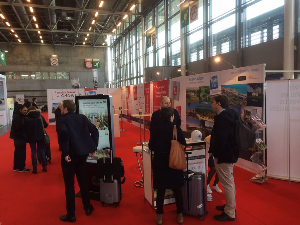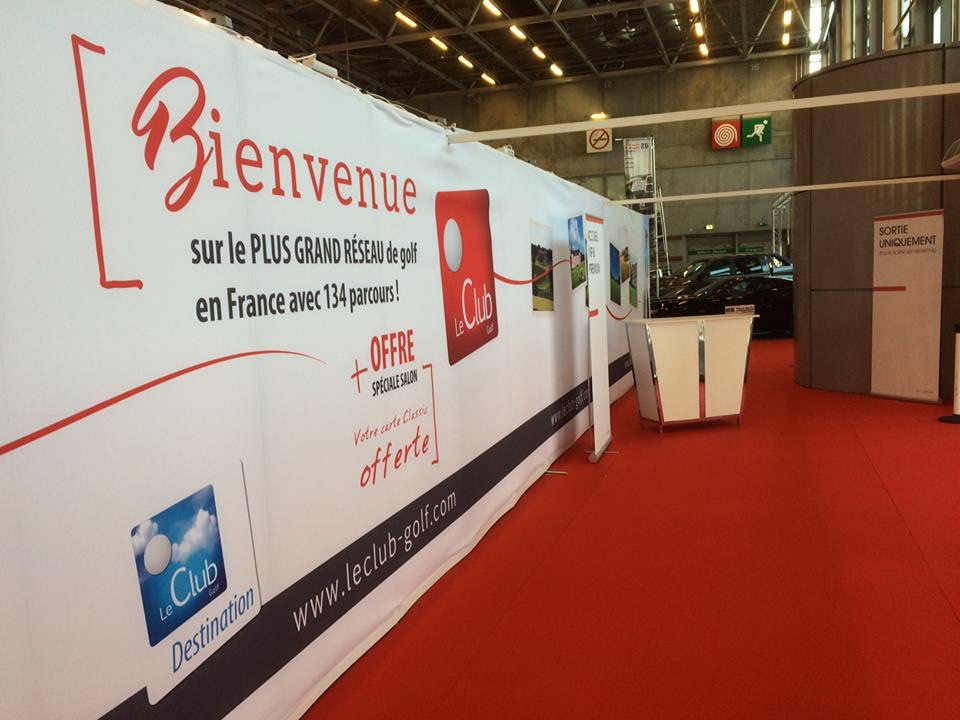 Photos prises par les clients suite à la mise en place pour les salons, habillages de stands, panneaux extérieurs installés, kakémonos posés, bâches stand et expo, chèques gagnants, drapeaux, publicité magazine, cartes cadeau...